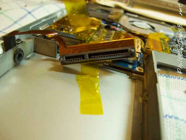 The SATA connector can then be removed check for fixing tape under drive.