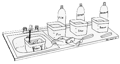 Equipment required is simple a source of running water is ideal if you limit print size to 5x7 then 4lite plastic tubs are sufficient Do not fill above half full Cut two V shaped notches on one side of wash tub just below rim to allow water to escape and retain prints |